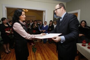 Prezydent Gdańska Paweł Adaowicz wręczył tytuł "Opiekunka Roku" pracownikom żłobka oraz zainaugurował projekt "Biblioteka Malucha". Gdańsk, Żłobek nr 6 "Koszałek Opałek" przy ul. Wassowskiego.