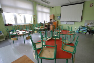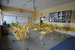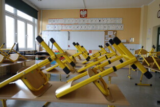 Gdańsk. Opustoszały Gdańsk po ogłoszeniu zagrożenia epidemicznego na obszarze RP. Nz. Zespół Szkół Ogólnokształcących nr 8 im. Jana Pawła II.