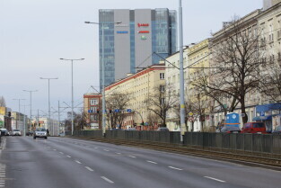 Gdańsk. Opustoszały Gdańsk po ogłoszeniu zagrożenia epidemicznego na obszarze RP. Nz. Aleja Grunwaldzka o godz. 11.11.