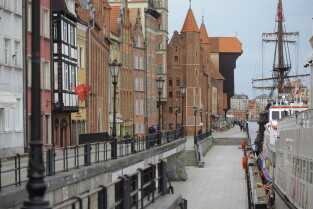 Gdańsk. Opustoszały Gdańsk po ogłoszeniu zagrożenia epidemicznego na obszarze RP. Nz. Długie Pobrzeże o godz. 15.12.