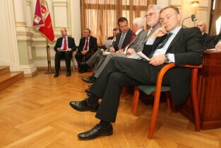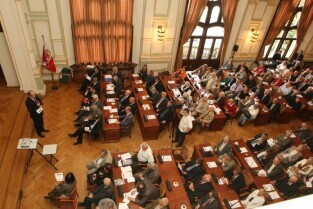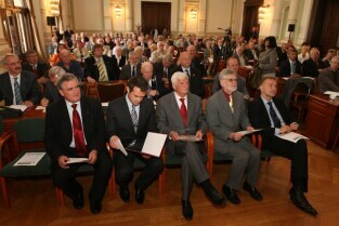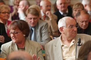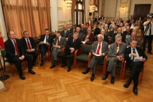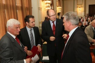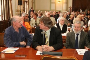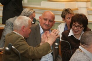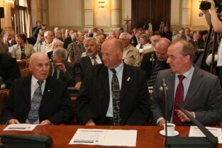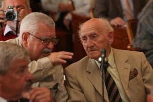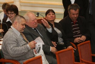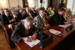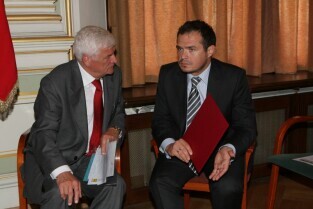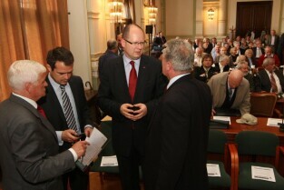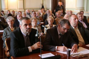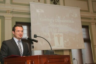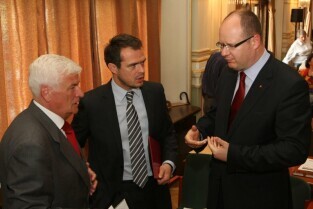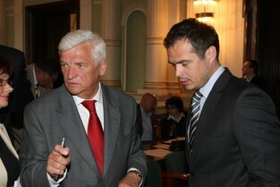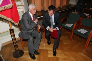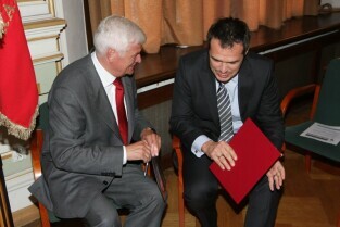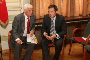 Spotkanie organizatorów Komitetów Wyborczych Solidarność w wyborach w 1989 r. Gdańsk, Nowy Ratusz. Nz. od lewej: Marszałek Województwa Pomorskiego Jan Kozłowski, Szef Gabinetu Politycznego Premieria RP Sławomir Nowak