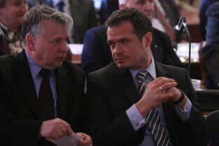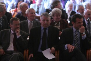 Spotkanie organizatorów Komitetów Wyborczych Solidarność w wyborach w 1989 r. Gdańsk, Nowy Ratusz. Nz. od lewej: Marszałek Województwa Pomorskiego Jan Kozłowski, Szef Gabinetu Politycznego Premieria RP Sławomir Nowak