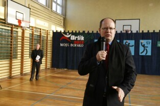 Gdańsk Żabianka, Szkoła Podstawowa nr 77. Otwarcie boiska w ramach programu Orlik 2012. Nz. Prezydent Gdańska Paweł Adamowicz