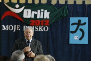 Gdańsk Żabianka, Szkoła Podstawowa nr 77. Otwarcie boiska w ramach programu Orlik 2012. Nz. były selekcjoner reprezentacji Polski Wojciech Łazarek