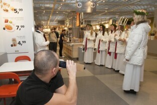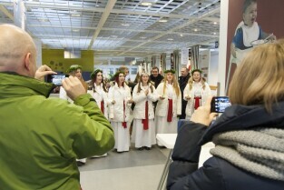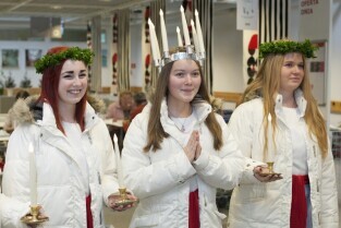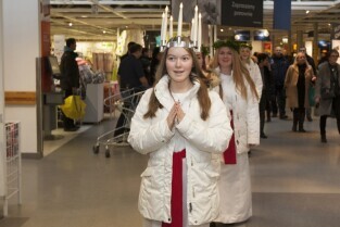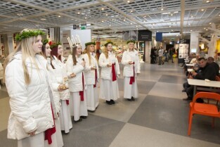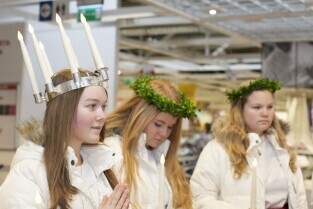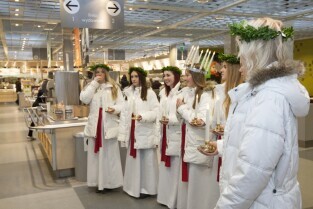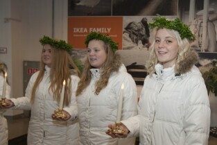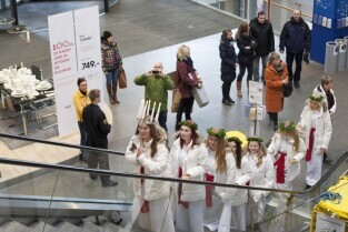 Tradycyjny Orszak św. Łucji ze szwedzkiego Kalmaru, który zwiastuje zbliżające się święta Bożego Narodzenia. Market IKEA Gdańsk w C.H. Matarnia