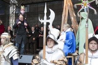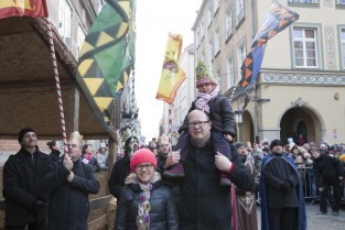 Barwny Orszak Trzech Króli, który przeszedł ulicami Głównego Miasta w Gdańsku. Nz. Prezydent Gdańska Paweł Adamowicz z córką Teresą