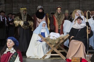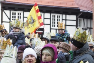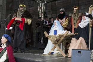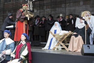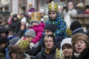 Barwny Orszak Trzech Króli, który przeszedł ulicami Głównego Miasta w Gdańsku. Nz. Prezydent Gdańska Paweł Adamowicz z córką Teresą