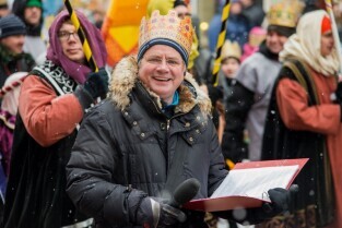 VII gdański Orszak Trzech Króli przeszedł ulicami gdańskiego Głównego Miasta. Nz Prezydent Gdańska, Paweł Adamowicz.