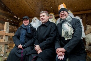 VII gdański Orszak Trzech Króli przeszedł ulicami gdańskiego Głównego Miasta. Nz proboszcz Bazyliki Mariackiej ks. Ireneusz Bradtke, ks. bp. Zbigniew Zieliński, Prezydent Gdańska, Paweł Adamowicz.