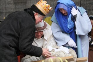 Już po raz szósty ulicami gdańskiego Głównego Miasta przeszedł Orszak Trzech Króli. Nz Larry Ok Ugwu, Michał Juszczakiewicz, Michał Targowski i Arcybiskup Sławoj Leszek Głódź.