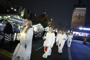 Gdańsk. Orszak św.Łucji na Jarmarku Bożonarodzeniowym.