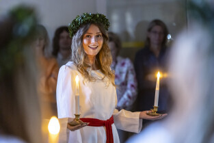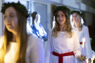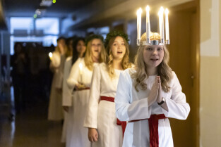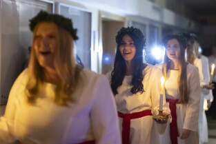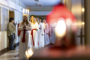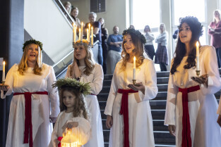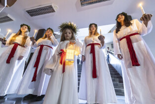 Gdańsk. Orszak św. Łucji wizyta w Urzędzie Miasta.
