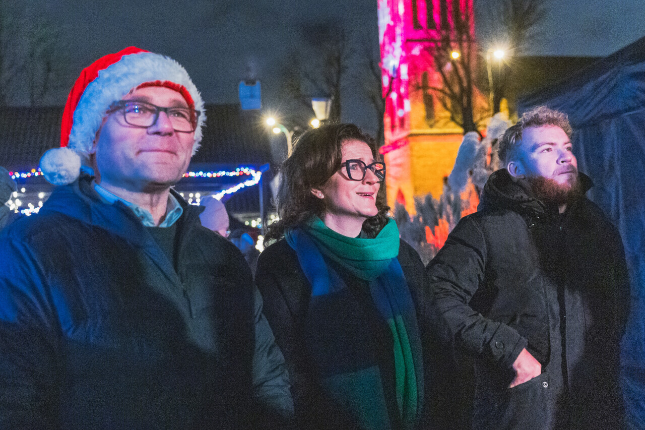 Gdańsk. Orunia - Św. Wojciech - Lipce. Uroczyste rozświetlenie choinki i dzielnicowy jarmark. Obecna była Aleksandra Dulkiewicz, prezydent Gdańska