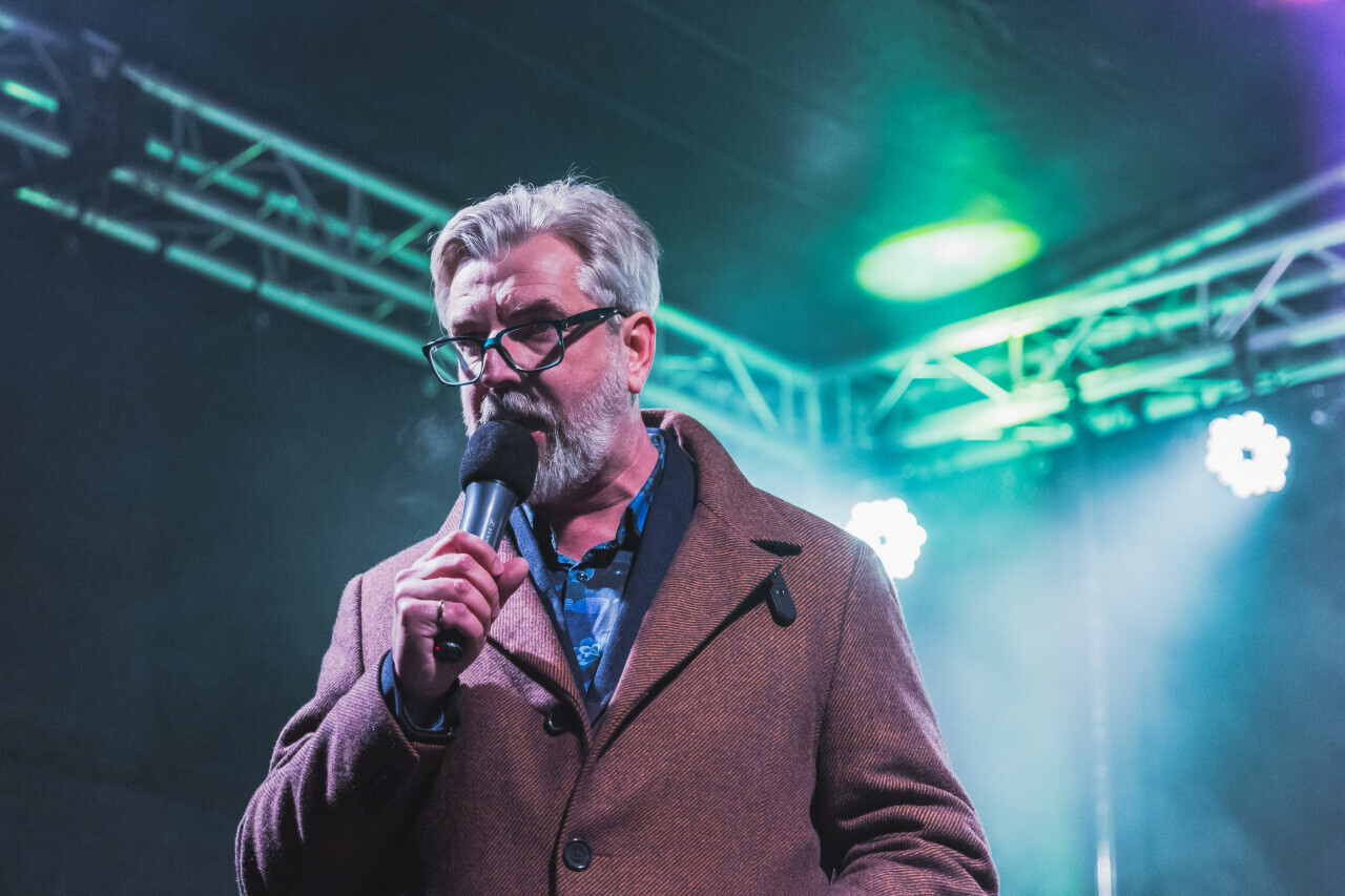 Gdańsk. Orunia - Św. Wojciech - Lipce. Uroczyste rozświetlenie choinki i dzielnicowy jarmark. Obecna była Aleksandra Dulkiewicz, prezydent Gdańska