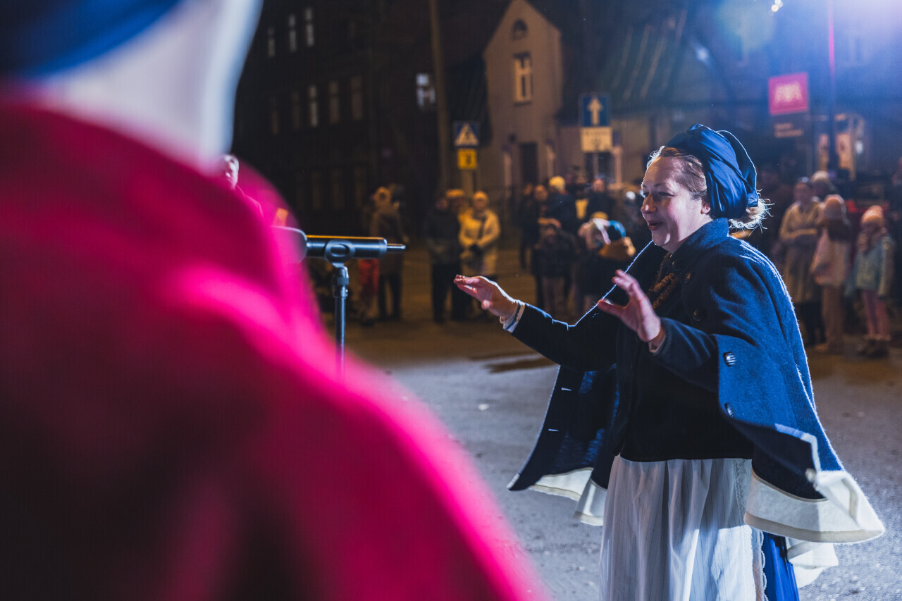 Gdańsk. Orunia - Św. Wojciech - Lipce. Uroczyste rozświetlenie choinki i dzielnicowy jarmark. Obecna była Aleksandra Dulkiewicz, prezydent Gdańska