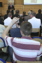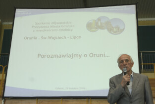Spotkanie obywatelskie Prezydenta Gdańska z mieszkańcami dzielnic: Orunia, Św. Wojciech, Lipce. Gdańsk, sal gimnastyczna Zespołu Szkół Inżynierii Środowiska. Nz. Aleksander Nagucki