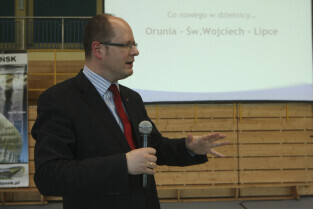 Spotkanie obywatelskie Prezydenta Gdańska z mieszkańcami dzielnic: Orunia, Św. Wojciech, Lipce. Gdańsk, sal gimnastyczna Zespołu Szkół Inżynierii Środowiska. Nz.przemawia Dyrektor ZDiZ Mieczysław Kotłowski