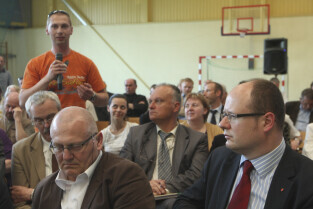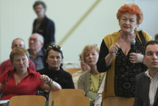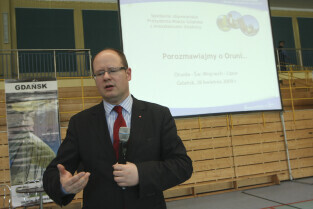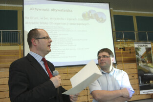 Spotkanie obywatelskie Prezydenta Gdańska z mieszkańcami dzielnic: Orunia, Św. Wojciech, Lipce. Gdańsk, sal gimnastyczna Zespołu Szkół Inżynierii Środowiska