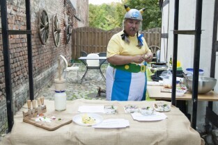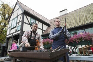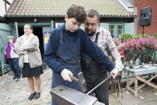 Gdańsk Orunia, ul. Gościnna. Festyn "Oruńskie Kujemy" w zabytkowej kuźni. Nz. Piotr Wróblewski (Gdańska Fundacja Innowacji Społecznej)