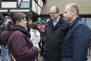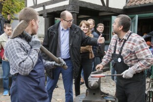 Gdańsk Orunia, ul. Gościnna. Festyn "Oruńskie Kujemy" w zabytkowej kuźni. Nz. Prezydent Gdańska Paweł Adamowicz