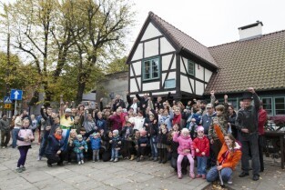 Gdańsk Orunia, ul. Gościnna. Festyn "Oruńskie Kujemy" w zabytkowej kuźni. Nz. po środku Marianna Sitek-Wróblewska (Gdańska Fundacja Innowacji Społecznej) i Aleksander Nagucki (Stowarzyszenie Moja Orunia)