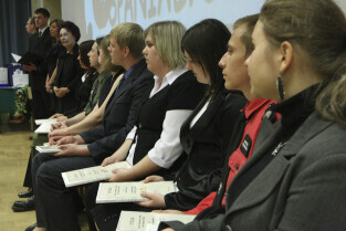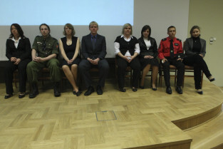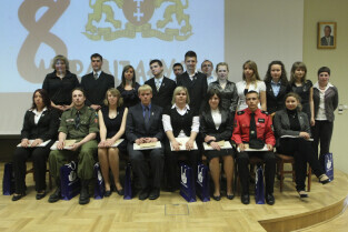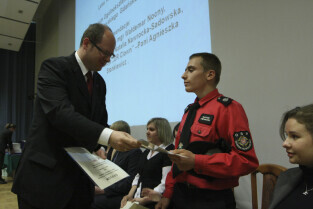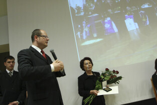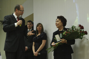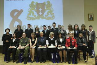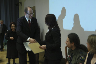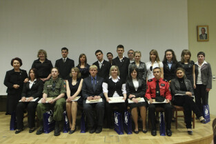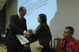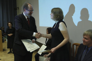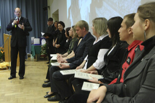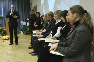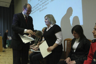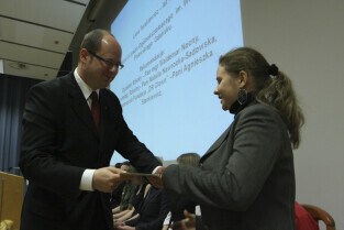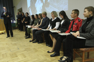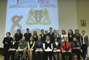 Finał X Gdańskiej Edycji Samorządowego Konkursu Ośmiu Wspaniałych, podczas której gratulacje laureatom złożył Prezydent Gdańska Paweł Adamowicz. Gdańsk, Aula Wydziału Filologicznego UG. Nz. od lewej: Małgorzata Bieniszewska, Piotr Ciołkowski, Agnieszka Dankiewicz, Piotr Jędra, Anna Król, Agnieszka Osińska, Bartosz Stępniewski, Lena Turakiewicz