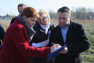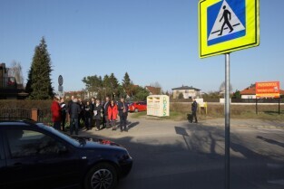 Gdańsk Osowa, Spacer przed spotkaniem z mieszkańcami. Nz Wizytacja Skrzyżowania ulic Niedziałkowskiego z Koziorożca.