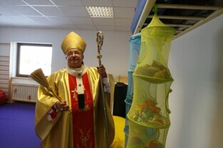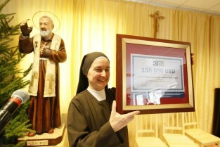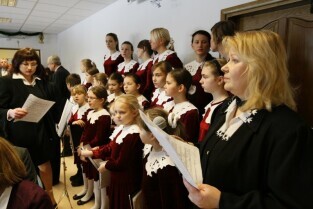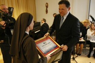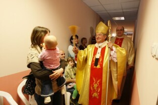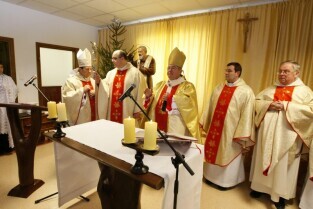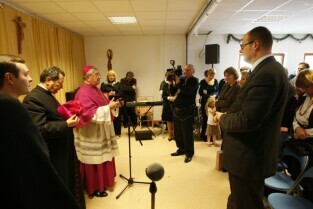 Uroczystość poświęcenia budynku wczesnej interwencji w w Ośrodku Rehabilitacyjno - Wypoczynkowym w Gdańsku Sobieszewie, prowadzone przez Towarzystwo Opieki nad Ociemniałymi i Zgromadzenie Sióstr Franciszkanek Służebnic Krzyża