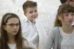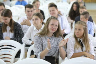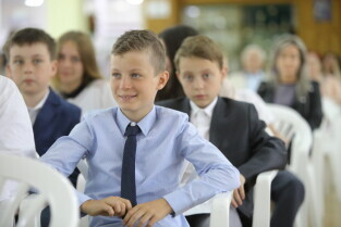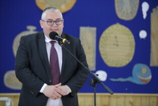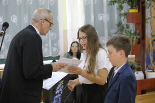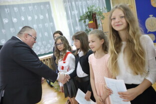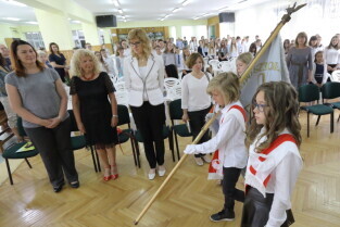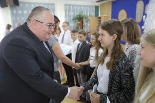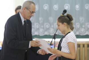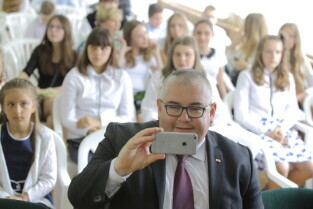 Gdańsk. Ostatni dzwonek dla uczennic i uczniów w Zespole Kształcenia Podstawowego i Gimnazjalnego nr 12. Nz. Zastępca prezydenta ds. polityki społecznej Piotr Kowalczuk.