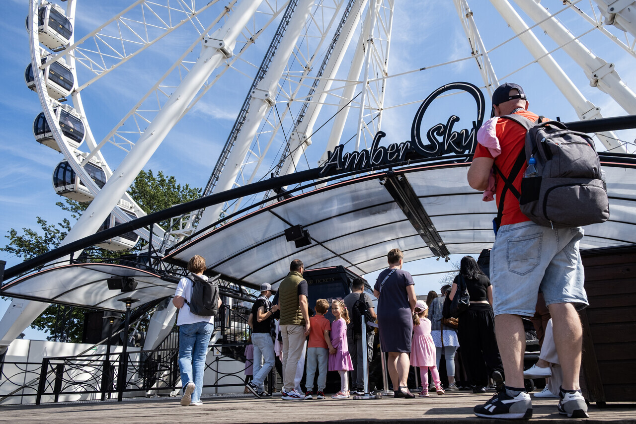 Gdańsk. Koło widokowe AmberSky czynne będzie do końca sierpnia 2025 roku. Równocześnie trwają prace budowlane pod montaż nowego koła, które zostanie uruchomione w styczniu 2026 roku.