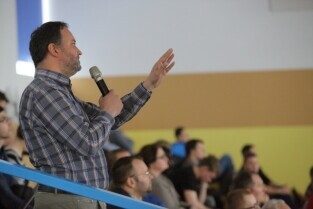 Gdańsk Szkoła podstawowa nr 12. Piąte ,ostatnie spotkanie w sprawie przebiegu Nowej Politechnicznej. Nz Marek Nakonieczny (ALTER POLIS Gdańska Pracownia Urbanistyczna Sp. z o.o.)