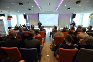 Olivia Business Centre w Gdańsku. Otwarcie Biura Globalnego Centrum Usług Wspólnych firmy ThyssenKrupp. Nz Andrzej Bojanowski-Wiceprezydent Gdańska