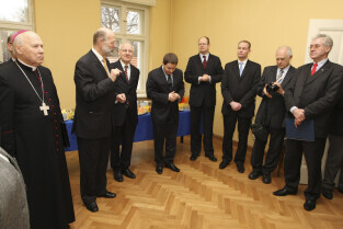 Otwarcie Centrum Wiedzy i Przedsiębiorczości Politechniki Gdańskiej. Gdańsk, willa przy al. Zwycięstwa 27. Nz. Arcybiskup Tadeusz Gocłowski