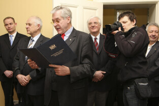 Otwarcie Centrum Wiedzy i Przedsiębiorczości Politechniki Gdańskiej. Gdańsk, willa przy al. Zwycięstwa 27. Nz. Janusz Rachoń, były Rektor PG, zdjęcie robi Rafał Malko /GW/