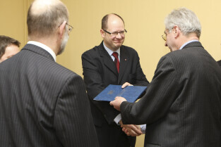 Otwarcie Centrum Wiedzy i Przedsiębiorczości Politechniki Gdańskiej. Gdańsk, willa przy al. Zwycięstwa 27. Nz. Jan Kozłowski, Marszałek Województwa Pomorskiego