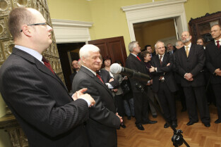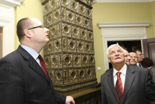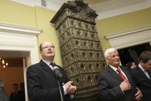 Otwarcie Centrum Wiedzy i Przedsiębiorczości Politechniki Gdańskiej. Gdańsk, willa przy al. Zwycięstwa 27. Nz. Paweł Adamowicz Prezydent Gdańska i Jan Kozłowski Marszałek Województwa Pomorskiego