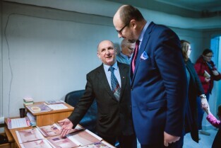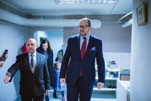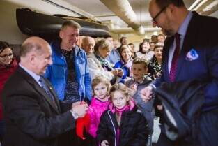 Otwarcie Domu Sąsiedzkiego Piecki-Migowo, ul. Jaśkowa Dolina 105. Nz Florian Wojciechowski i Prezydent Gdańska Paweł Adamowicz.