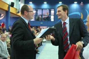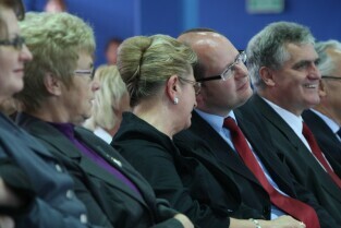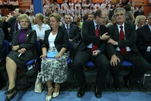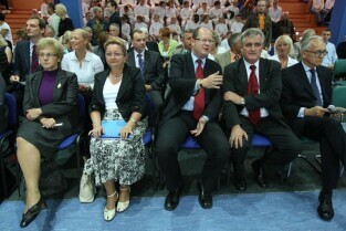 Otwarcie najnowocześniejszej w Europie Gdańskiej Szkoły Floretu oraz gdańska inauguracja roku szkolnego 2009/2010. Gdansk.ZKPiG nr 26 przy ulicy VII Dwor 6. Nz. od lewej: Danuta Wałęsa, Z-ca Prezydenta Gdańska Ewa Kamińska, Prezydent Gdańska Paweł Adamowicz, Przewodniczący RMG Bogdan Oleszek