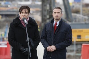 Gdańsk. Otwarcie II etapu Trasy Sucharskiego łączącego ul. Wosia Budzysza i Węzeł ku Ujściu. Nz. od lewej: Wiceprezes Gdańskich Inwestycji Komunalnych Sp. z o.o. Iwona Żygowska, Minister Transportu, Budownictwa i Gospodarki Morskiej Sławomir Nowak