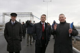 Gdańsk. Otwarcie II etapu Trasy Sucharskiego łączącego ul. Wosia Budzysza i Węzeł ku Ujściu. Nz. od lewej: Z-ca Prezydenta Gdańska Andrzej Bojanowski, Marszałek Woj. Pomorskiego Mieczysław Struk, Minister Transportu, Budownictwa i Gospodarki Morskiej Sławomir Nowak