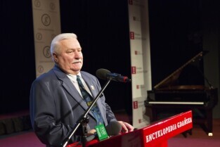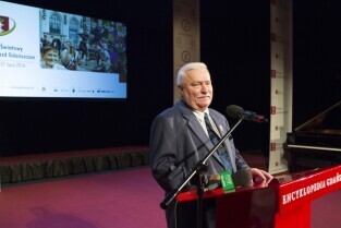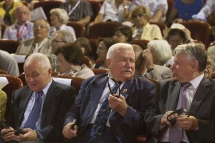 Gdańsk, Teatr Wybrzeże. Uroczystość otwarcia IV Zjazdu Gdańszczan oraz I Kongres Gedanistyczny. Nz. były Prezydent RP Lech Wałęsa