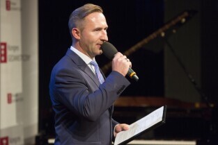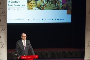 Gdańsk, Teatr Wybrzeże. Uroczystość otwarcia IV Zjazdu Gdańszczan oraz I Kongres Gedanistyczny. Nz. Prezydent Gdańska Paweł Adamowicz