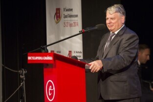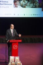 Gdańsk, Teatr Wybrzeże. Uroczystość otwarcia IV Zjazdu Gdańszczan oraz I Kongres Gedanistyczny. Nz. Marszałek Senatu RP Bogdan Borusewicz
