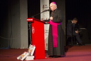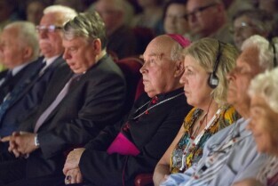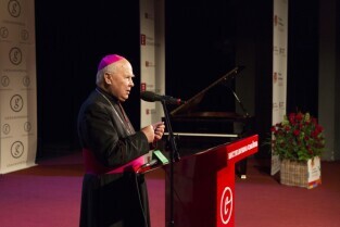 Gdańsk, Teatr Wybrzeże. Uroczystość otwarcia IV Zjazdu Gdańszczan oraz I Kongres Gedanistyczny. Nz. Abp Senior Tadeusz Gocłowski