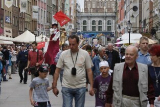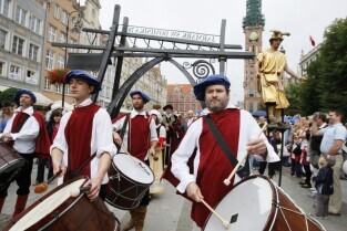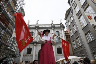 Parada oraz przedstawienie na otwarcie Jarmarku św. Dominika w Gdańsku.