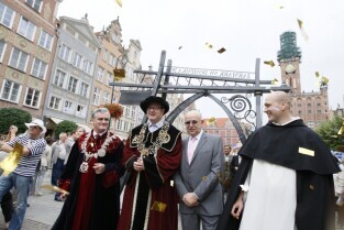 Parada oraz przedstawienie na otwarcie Jarmarku św. Dominika w Gdańsku. Nz. od lewej: Przewodniczący Rady Miasta Gdańska Bogdan Oleszek, Prezydent Gdańska Paweł Adamowicz, Prezes MTG SA Andrzej Kasprzak, Przeor Dominikanów w Gdańsku Michał Mitka