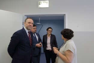 Gdańsk. Otwarcie Oddziału Chorób Wewnętrznych w Szpitalu św. Wojciecha w Gdańsku. Nz. Paweł Orłowski-Zarząd Województwa Pomorskiego, Wiceprezydent Gdańska Aleksandra Dulkiewicz, Marszałek Województwa Pomorskiego Mieczysław Struk i Kierownik Oddziału Chorób Wewnętrznych Awa Barlikowska-kostiuk.