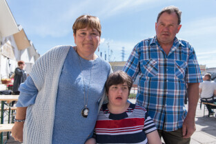 Gdańsk, ul. Mikołaja Reja 34b. Uroczyste otwarcie Środowiskowego Domu Samopomocy dla gdańszczan niepełnosprawnych intelektualnie. Nz. Pani Barbara Zawodniak z mężem Ryszardem i córką Iwoną