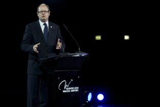 Port Lotniczy Gdańsk im. Lecha Wałęsy. Otwarcie T2 - nowego terminala pasażerskiego. Nz. Prezydent Gdańska Paweł Adamowicz