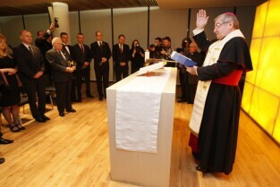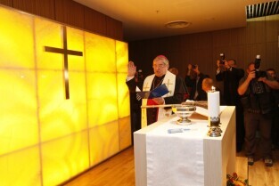 Port Lotniczy Gdańsk im. Lecha Wałęsy. Otwarcie T2 - nowego terminala pasażerskiego. Nz. poświęcenie kaplicy, którego dokonał Metropolita Gdański Abp Sławoj Leszek Głódź